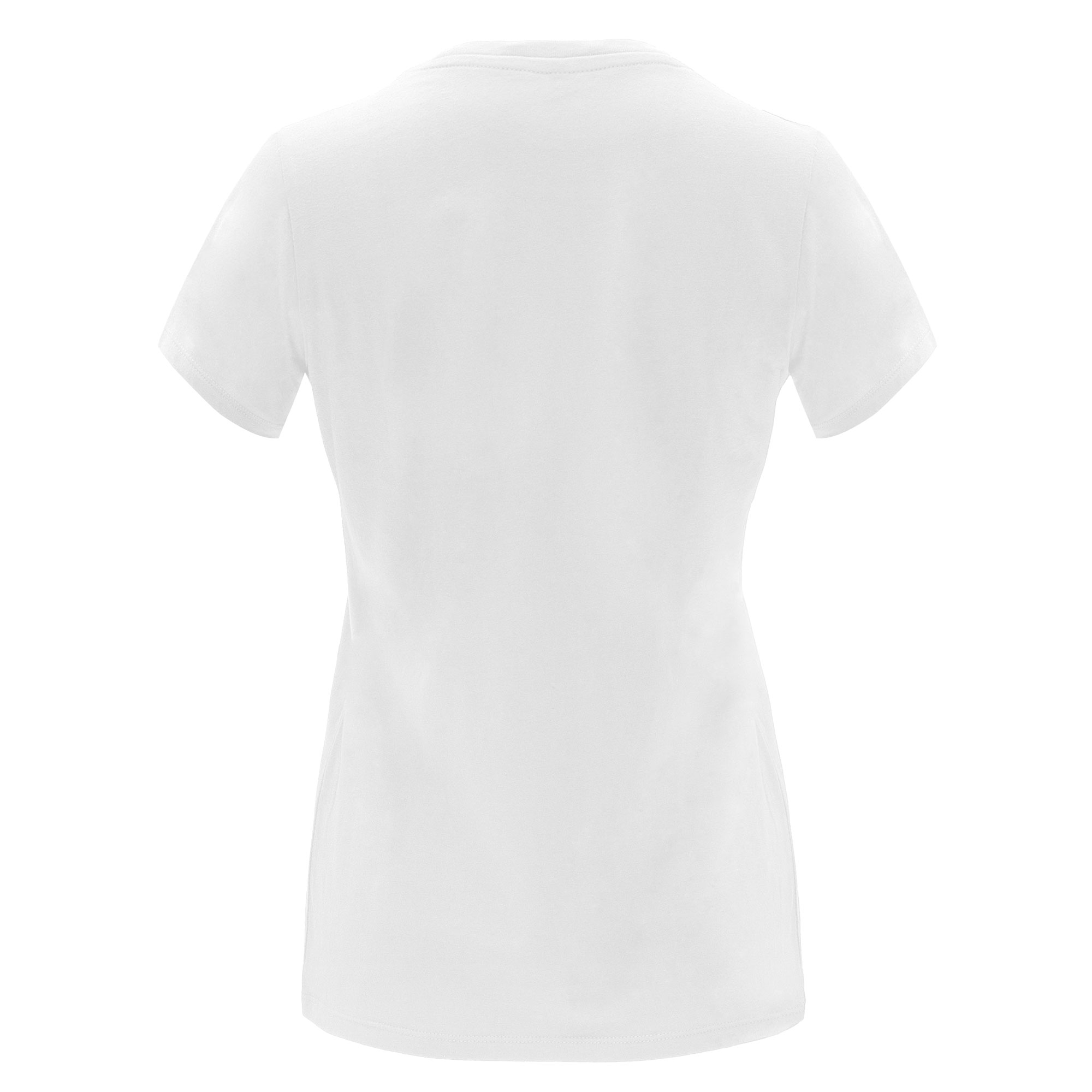 Camiseta 100% algodón. Diseñada con cuello redondo y costuras reforzadas de hombro a hombro para mayor durabilidad. Sus costuras laterales mejoran el ajuste y el confort.